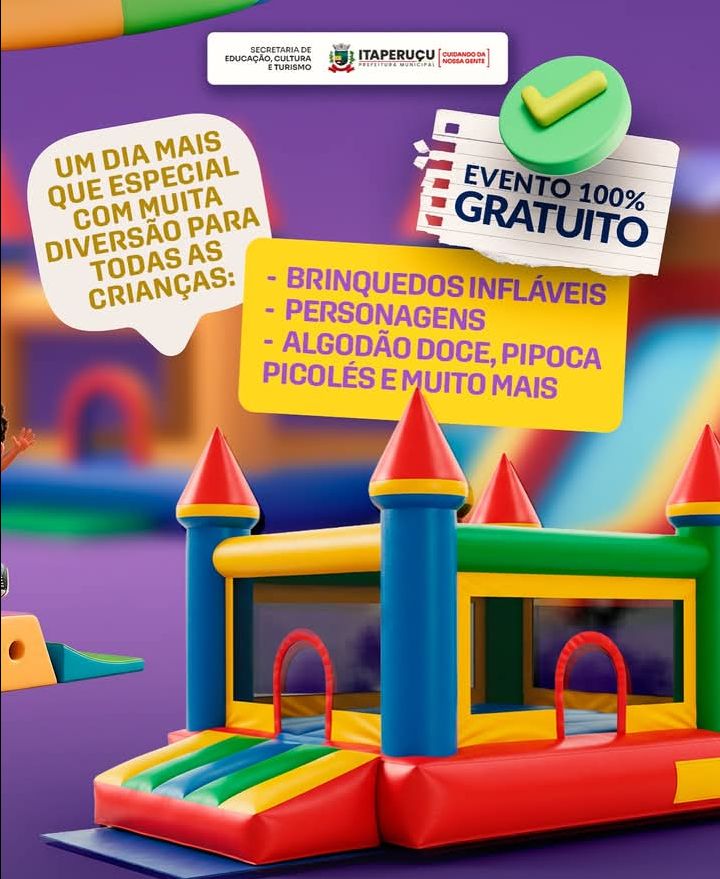 FESTA DO DIA DAS CRIANÇAS DE ITAPERUÇU ACONTECE NO SÁBADO, 18 DE OUTUBRO, A PARTIR DAS 9H, NO CAMPO MUNICIPAL!
