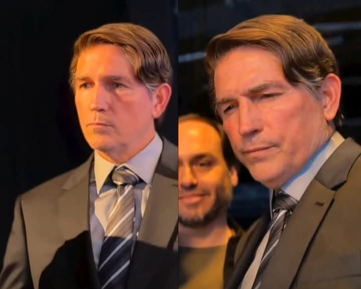 JIM CAVIEZEL APARECE CARACTERIZADO COMO JAIR BOLSONARO EM CENAS DO FILME DARK HORSE