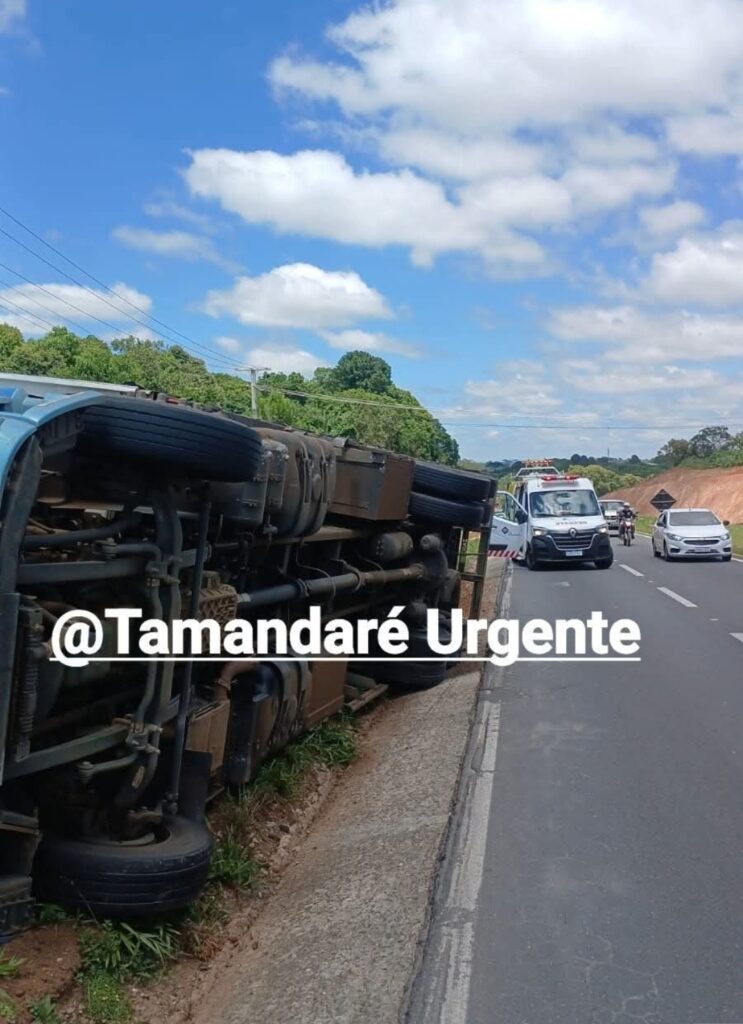 CAMINHÃO TOMBA ÀS MARGENS DO CONTORNO NORTE EM CURITIBA