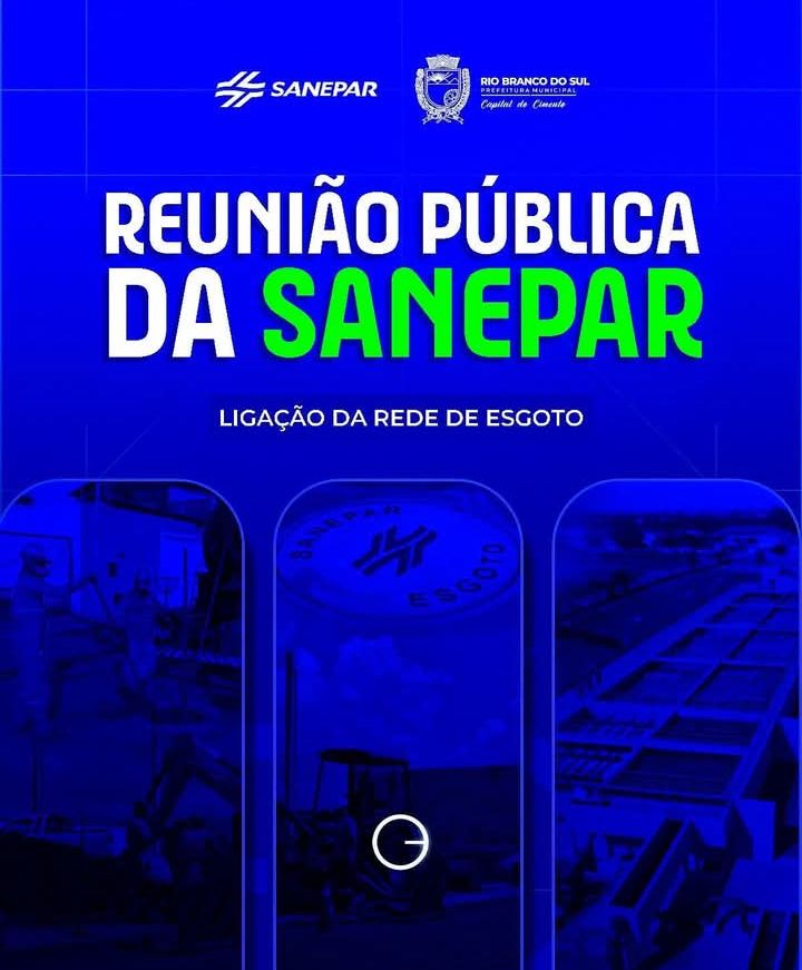 HOJE(03/12), A SANEPAR PROMOVERÁ UMA REUNIÃO PARA ORIENTAR SOBRE LIGAÇÃO DA REDE DE ESGOTO EM RIO BRANCO DO SUL