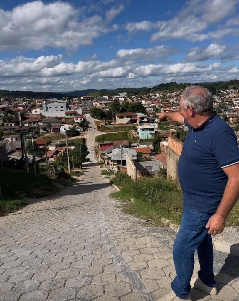 VICE-PREFEITO ACOMPANHA OBRAS DE PAVIMENTAÇÃO EM BAIRROS DE RIO BRANCO DO SUL.