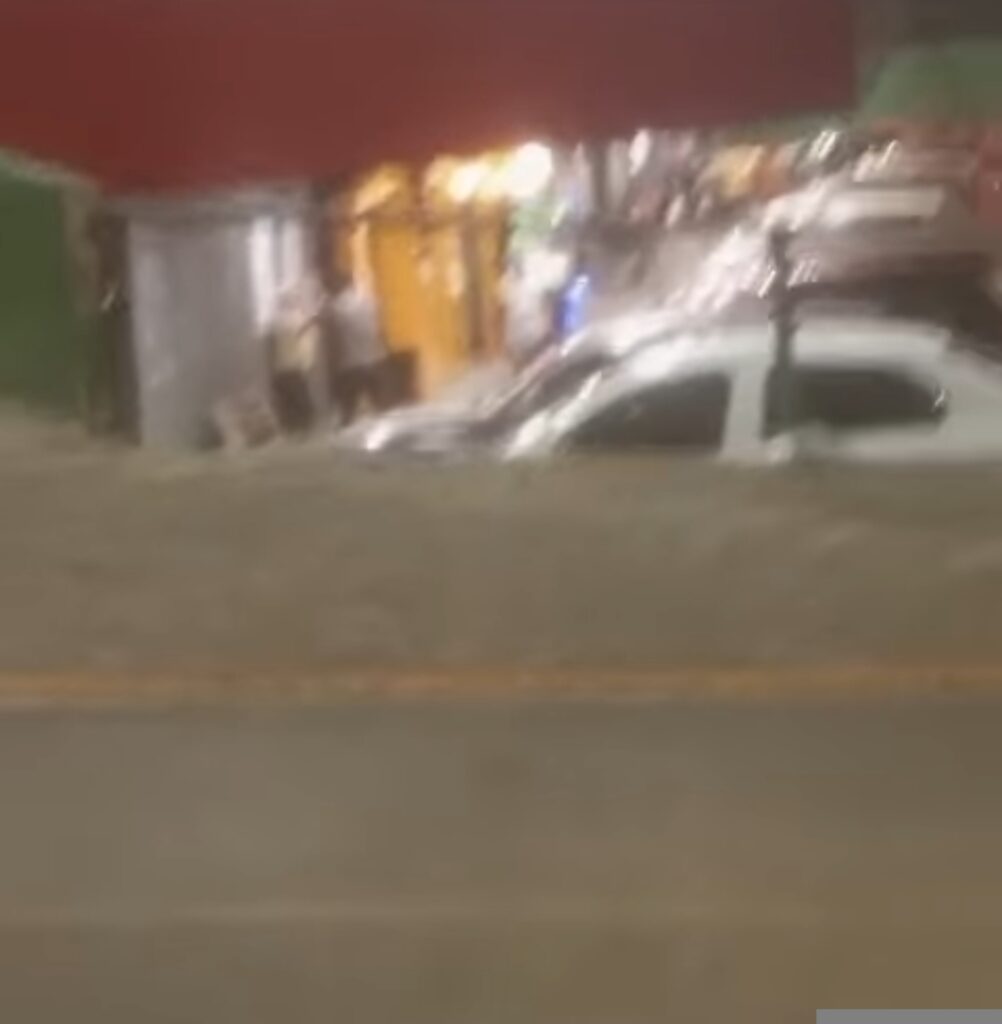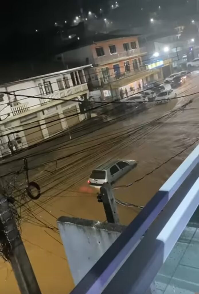 A intensa chuva da noite de quinta-feira causou alagamento no rio da Vila Velha, atingindo a região da Rocinha. Um carro que tentou atravessar a área ficou preso na enchente. Fonte: Jornal Expresso