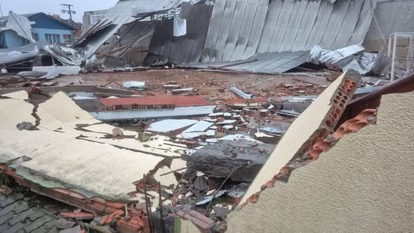 VENDAVAL CAUSA DESTRUIÇÃO NO INTERIOR DE FLORES DA CUNHA-RS.