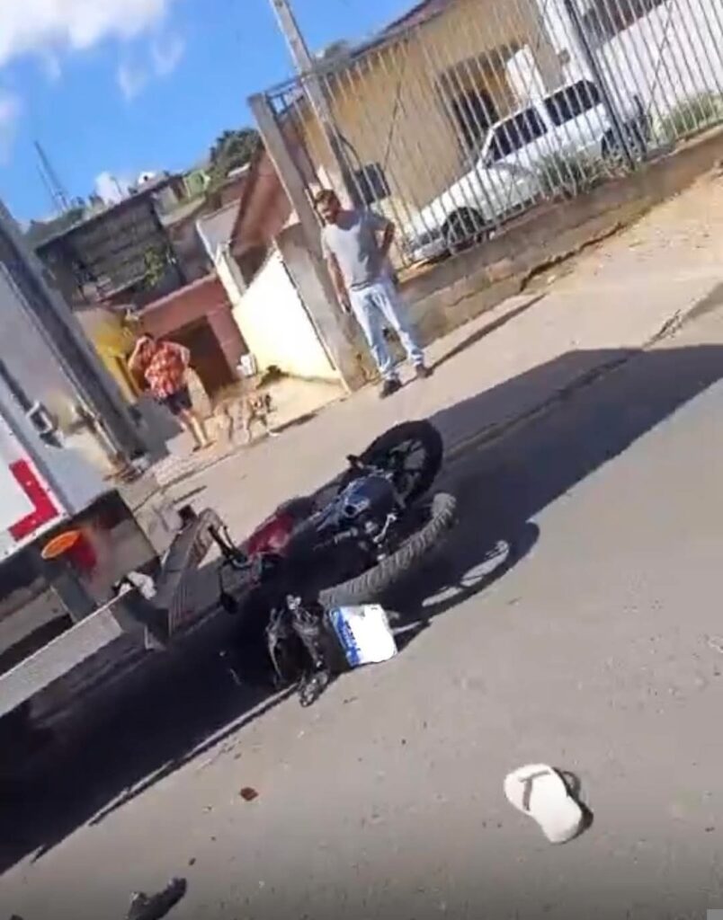 JOVEM DE 22 ANOS FICA FERIDA APÓS COLISÃO ENTRE MOTO E CAMINHÃO NA RODOVIA DOS MINÉRIOS