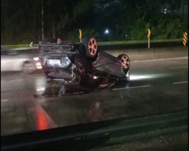 CARRO CAPOTA APÓS BATIDA COM CAMINHÃO NA RODOVIA DOS MINÉRIOS, EM ALMIRANTE TAMANDARÉ