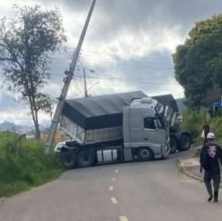 CAMINHÃO INTERDITA RUA APÓS ACIDENTE EM ALMIRANTE TAMANDARÉ