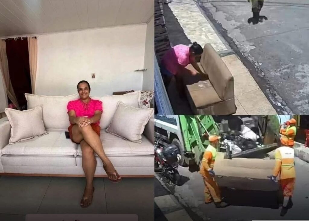 MULHER GANHA SOFÁ NOVO APÓS GARI LEVAR POR ENGANO.