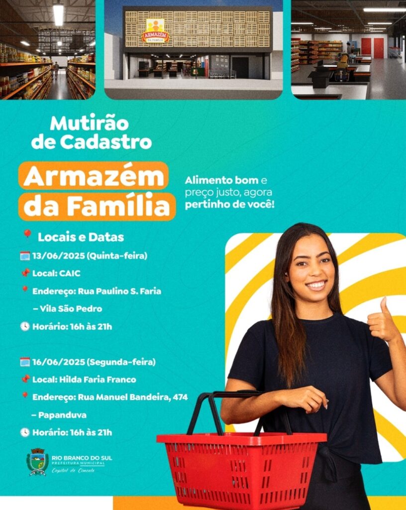 A Prefeitura de Rio Branco do Sul anunciou a realização de um mutirão de cadastro para o Programa Armazém da Família, que será inaugurado em breve no município. A iniciativa tem como objetivo facilitar o acesso das famílias de baixa renda a alimentos de qualidade com preços acessíveis.
