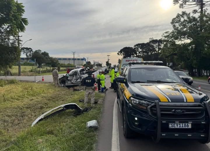 Na tarde deste sábado (25), uma colisão entre um carro e um caminhão no quilômetro 163 da BR-476, em Araucária, região metropolitana de Curitiba, causou a morte de duas pessoas e feriu gravemente uma criança de dois anos. O helicóptero do Núcleo de Operações Aéreas da Polícia Rodoviária Federal (NOA/PRF) foi acionado às 14h45 após a regulação médica do SAMU informar a gravidade do acidente. No local, um homem, cerca de 40 anos, e uma mulher, aproximadamente 50, morreram na hora. O menino de dois anos foi ejetado do veículo durante a colisão, apresentando ferimentos na face e sinais de traumatismo craniano, mas estava consciente e respirando. Ele foi atendido pela equipe aeromédica e levado de helicóptero ao Hospital do Trabalhador, em Curitiba, onde permanece em estado grave. A Polícia Rodoviária Federal segue investigando as causas do acidente, cuja identidade das vítimas ainda não foi divulgada. A tragédia reforça a necessidade de atenção redobrada na rodovia.